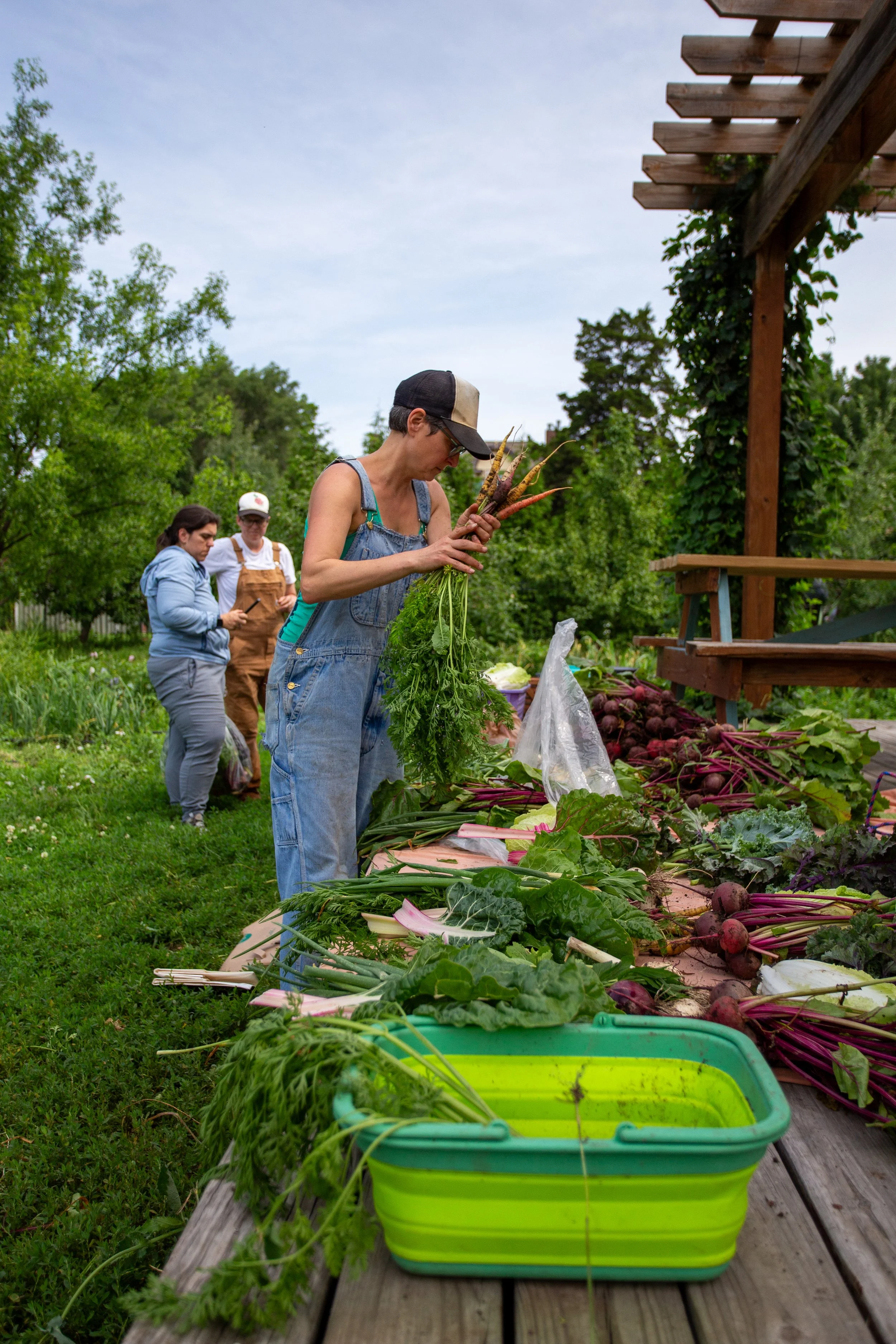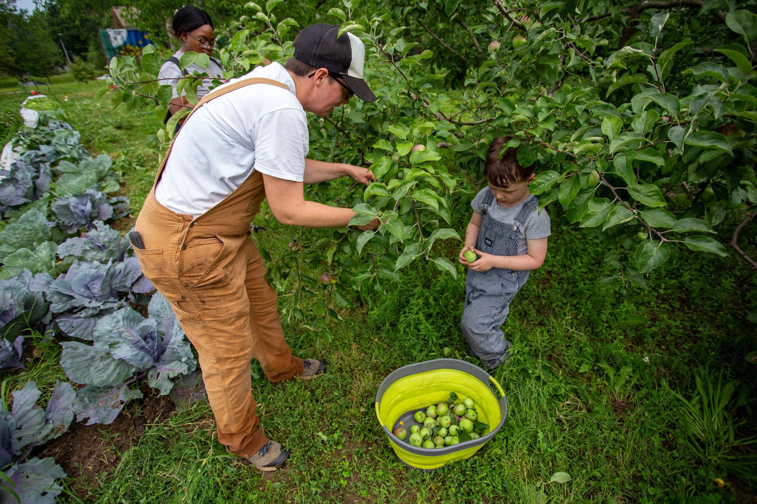 On a warm summer morning, while Ami shared the farm’s story, her wife packed up the weekly CSA shares. Nearby, their little boy climbed into the apple trees and helped gather blackberries, adding his own harvest to the baskets. It was a joyful, ordinary moment that captured the spirit of the farm. Longfellow is a place where food, family, and community all grow together.