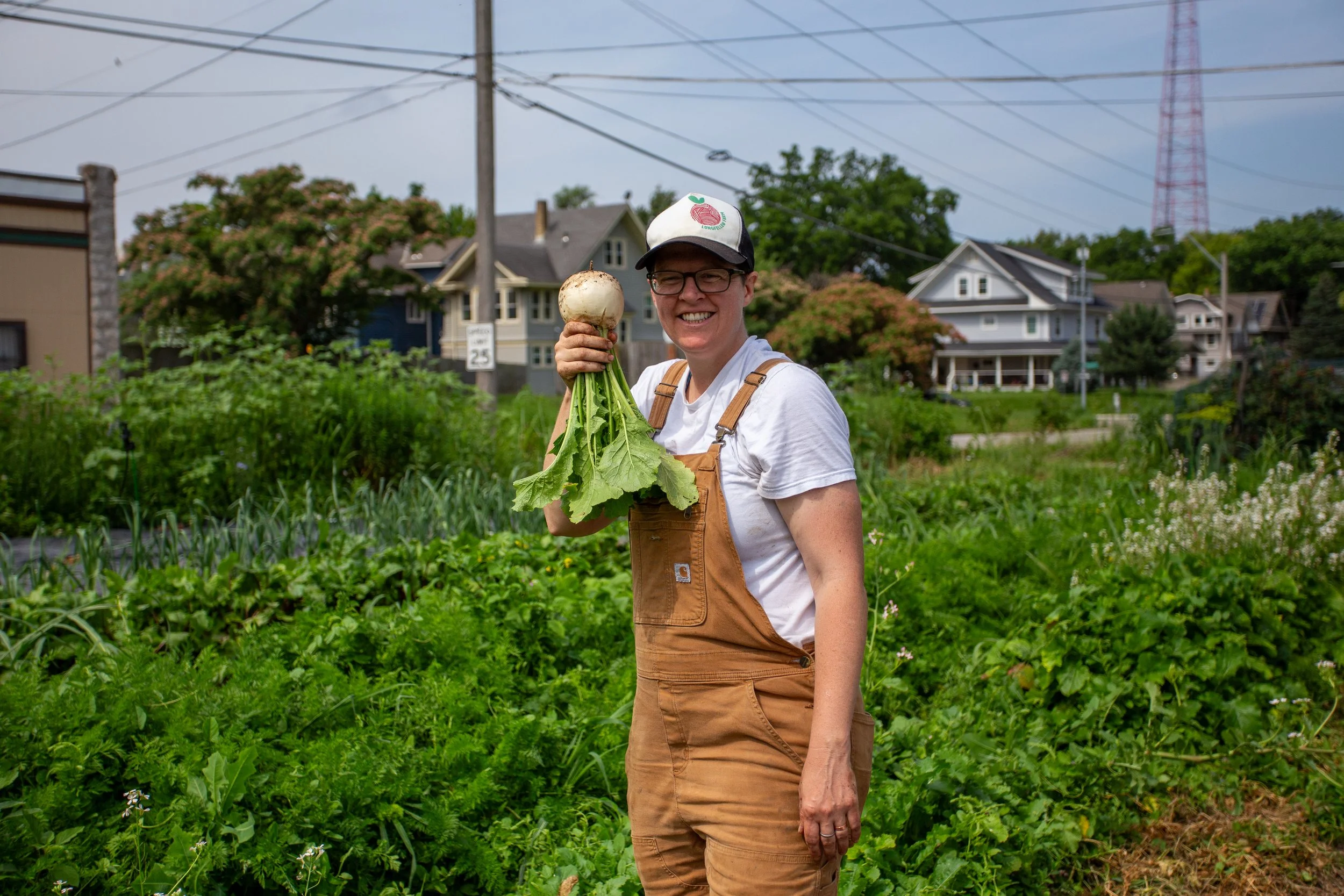 Ami’s connection to growing food started long before Longfellow. She grew up in a small town in Iowa, helping her mom garden and sell handmade vegetarian sushi at the local farmers market. After moving to Kansas City to work with Cultivate KC, she found herself craving something more hands-on. “I was doing community engagement and events for work,” she says. “But I had a shady yard and wanted a space where I could grow food and get to know my neighbors.”