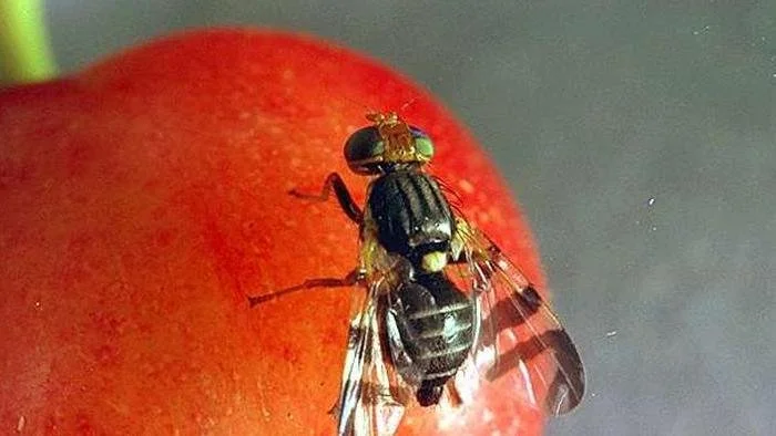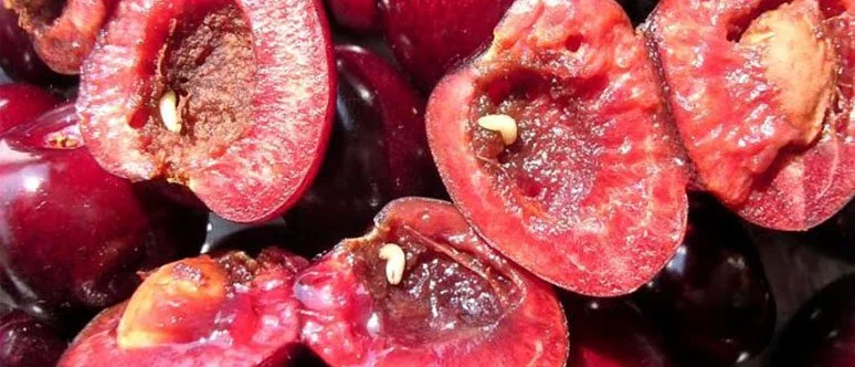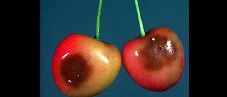 The cherry fruit fly is a serious pest for cherries. The tiny insect lays eggs on ripening cherries, causing the fruit to turn brown, shrivel up, and become rotten.